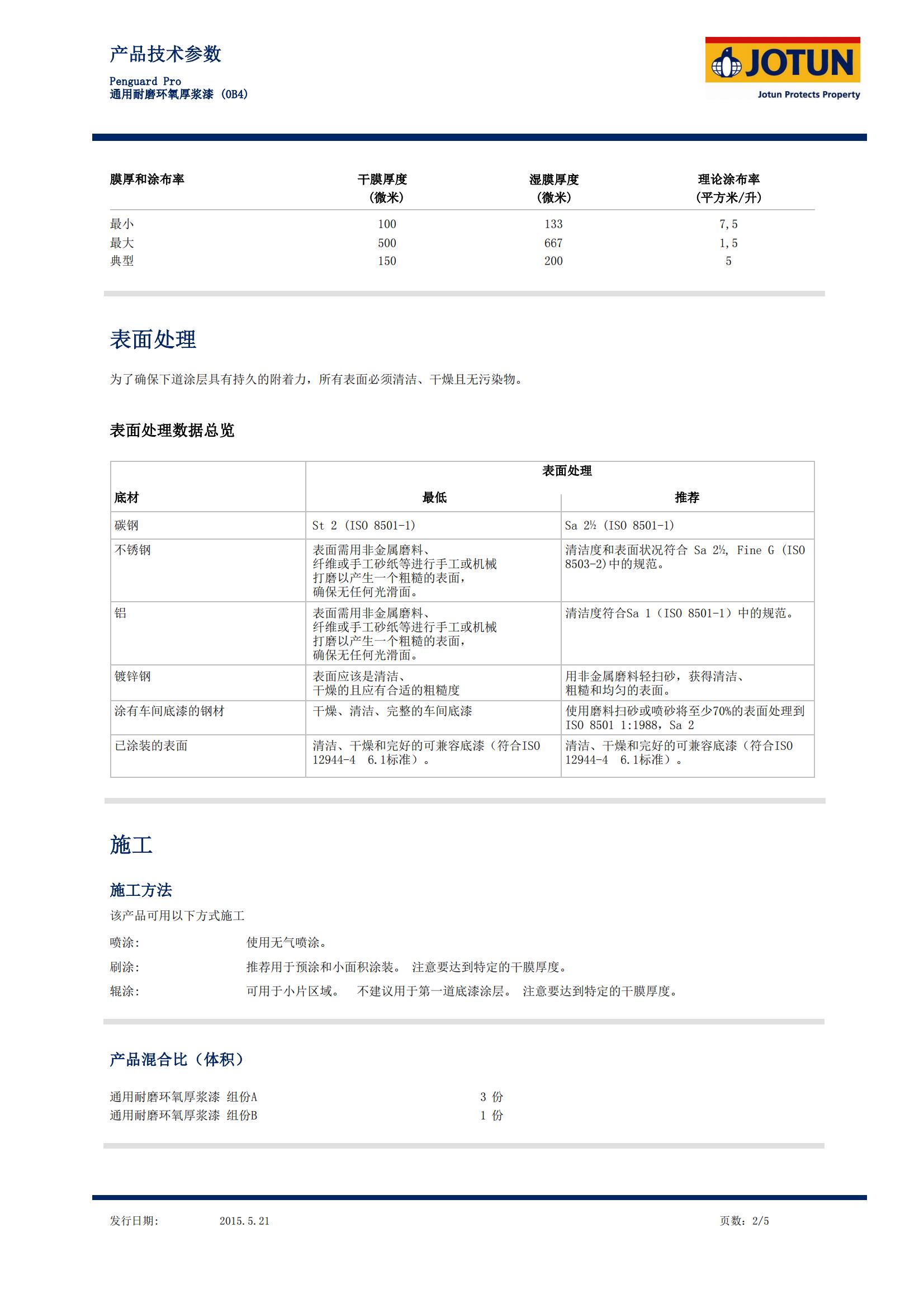 • Penguard Pro 0B4:這是一種雙組份胺固化環(huán)氧涂料。 它是具有低表面處理、高固體含量等特點的厚漿型產(chǎn)品。專用于新建工程的全方位通用型涂料。 在大氣環(huán)境和浸沒環(huán)境下可作為底漆、中間漆、面漆或單道涂層系統(tǒng)。適用于適當處理的碳鋼、不銹鋼、鋁、鍍鋅鋼和熱噴涂鋅的底材。適用于高腐蝕環(huán)境和浸沒環(huán)境下的鋼結(jié)構和管道。 推薦用于近海環(huán)境,包括浪濺區(qū)、精煉廠、發(fā)電站、橋梁、建筑和采礦設備。專用為涂裝體系中的通用型產(chǎn)品,持久性更好。 在一定干膜范圍及涂裝部位內(nèi),本產(chǎn)品有優(yōu)異的柔韌性